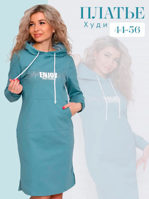 Артикул: Туника женская с капюшоном, модель 170, трикотаж (Энжой, Бирюза)
