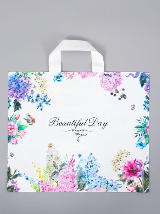 • Цена за 50 шт. Пакет с петлевой ручкой "Цветы вокруг" 35 х 30 х 8, см, 60 мкм