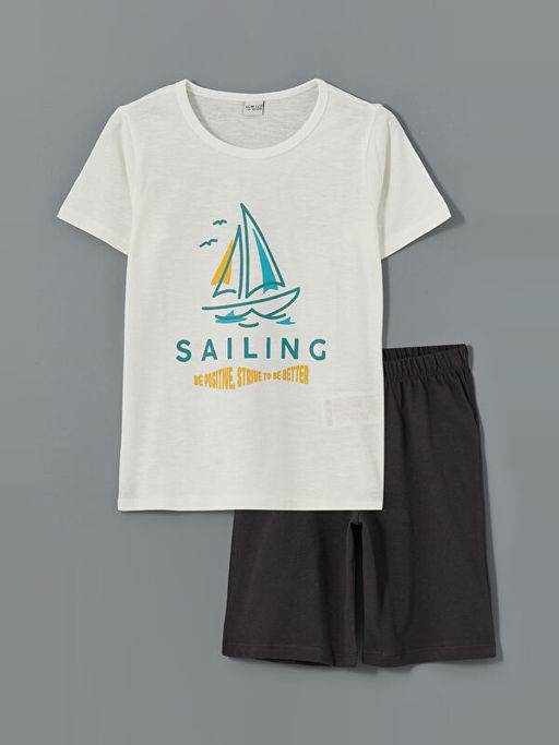 Bisiklet Yaka Erkek ?ocuk ?ortlu Pijama Tak?m?