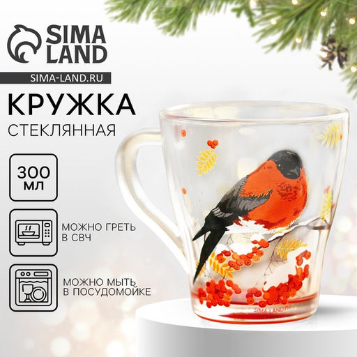 Кружка стеклянная новогодняя Дорого внимание «Снегирь», 300 мл
