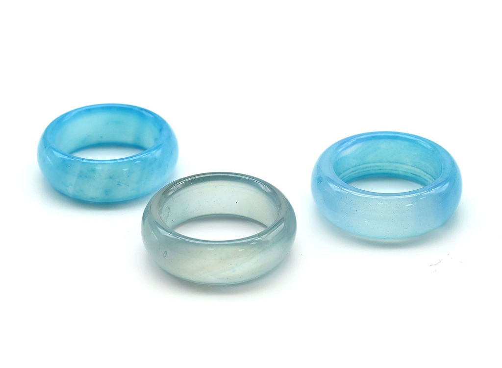 • Кольцо из цельного камня агата цв.голубой Радуга камня