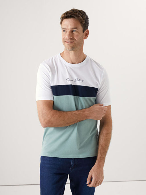 • Bisiklet Yaka K?sa Kollu Renk Bloklu Erkek Ti??rt