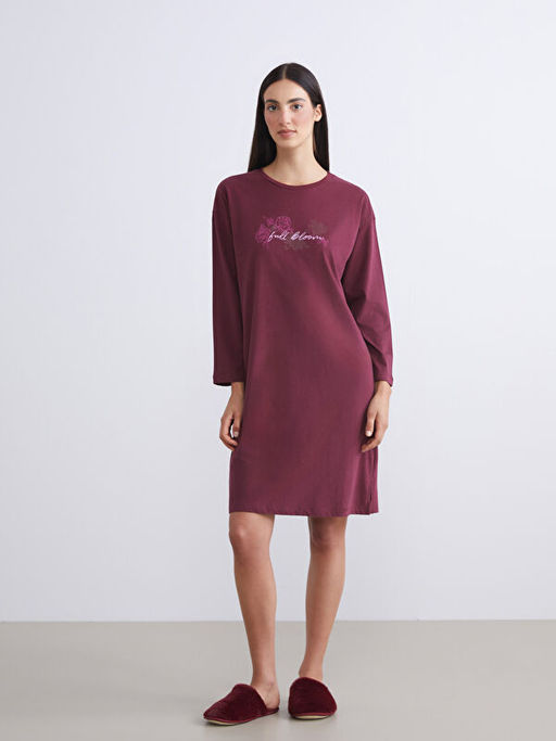 Petite Bisiklet Yaka Bask?l? Kad?n Gecelik