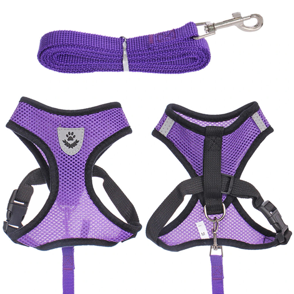 Цена за 2 шт. Шлейка с поводком 118см "Sweet puppy" размер M, цвет фиолетовый