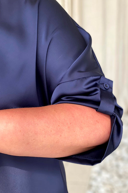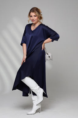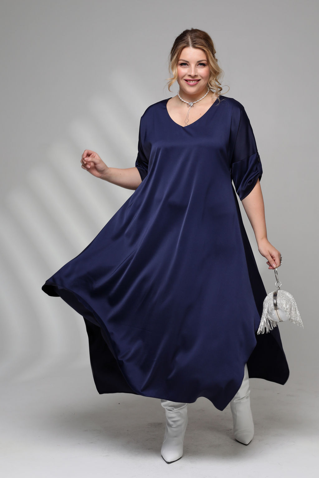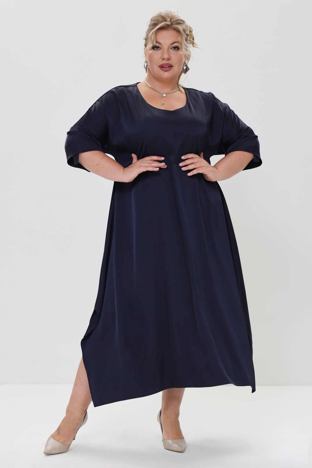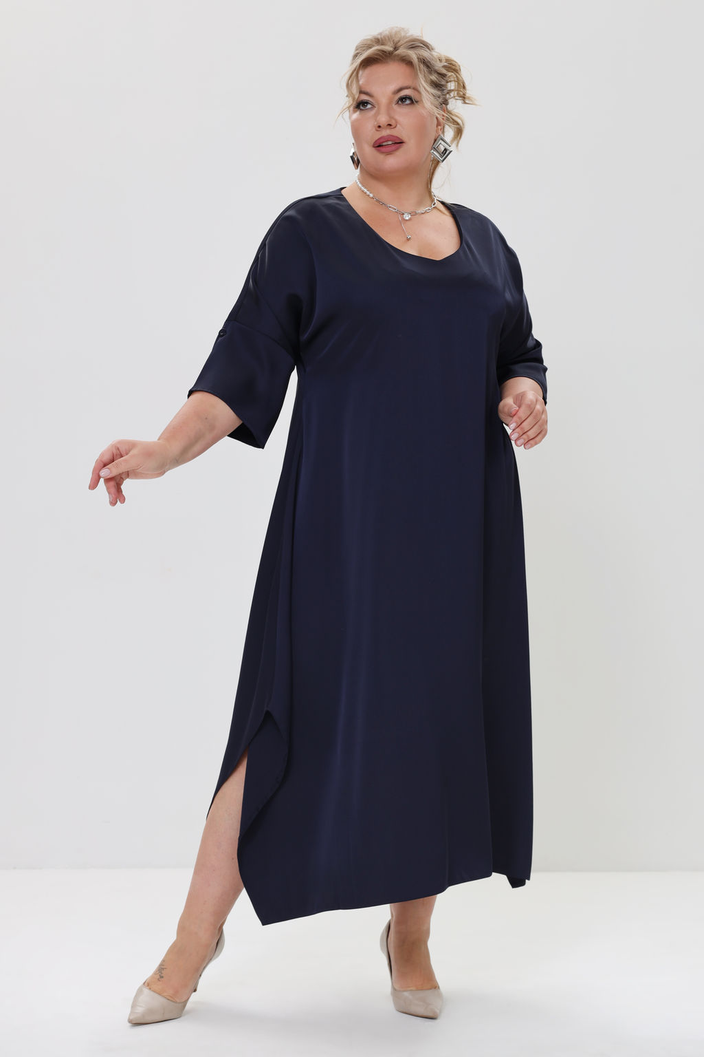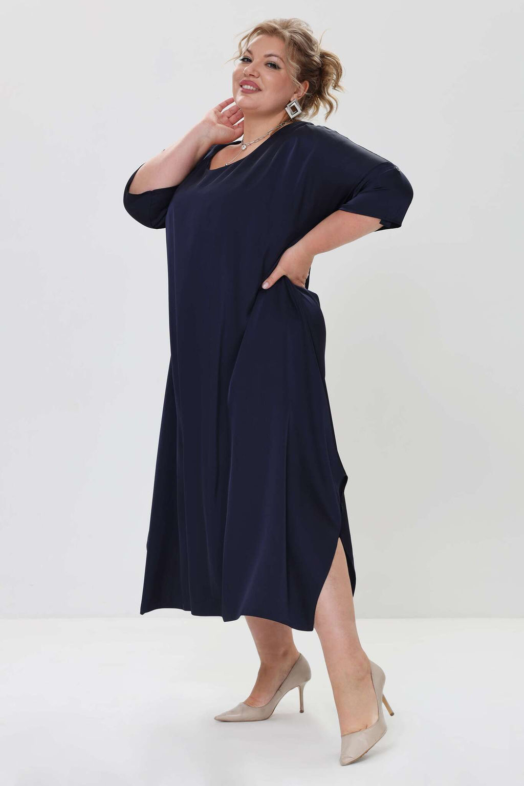 Платье свободный крой с хлястиками на рукавах темно-синее