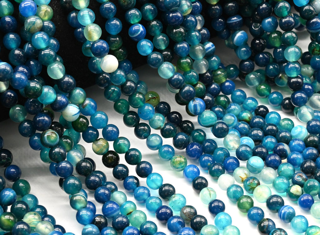 Бусины из агата тонированного шарик 6мм цв.синий, 37см, 63 бусины Радуга камня
