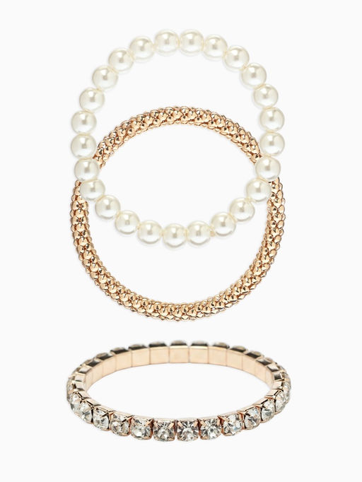 Браслеты «Стиль», набор 3 шт. шар №8, со стразами, тянется, белый в золоте