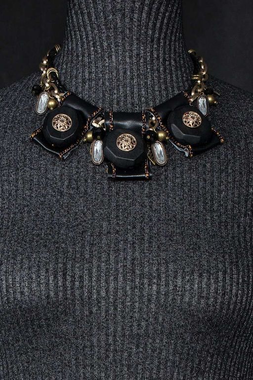 Стильный подвес с кожаными вставками, украшен бусинами и стразами.­