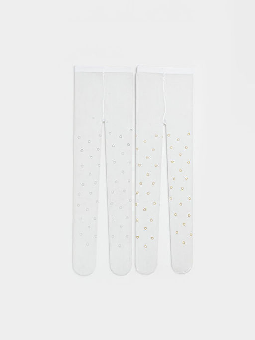 K?z Bebek Kalp Bask?l? K?lotlu ?orap 2li