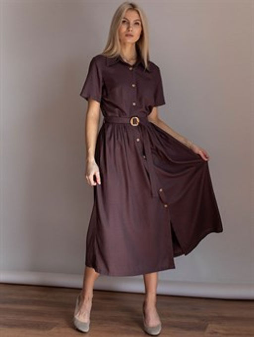 Платье очень понравилось. По размеру всё хорошо. Цвет более приглушенный, ближе цвет темный какао, а не с бордовым оттенком как на фото.Приятная ткань, тяжеленькая, плотная, но тонкая, не просвечивает (не легкая и рыхлая), отличается от 100% льна. Ровные швы. Единственный минус-очень долгая закупка (около 2 месяцев), учитывайте этот момент.