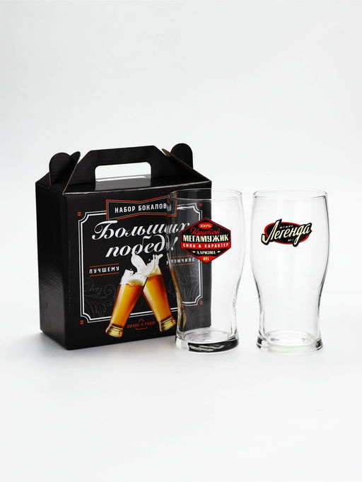 • Подарочный набор пивных бокалов Мегамужик, 2 шт. по 570 мл