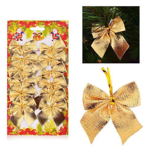• Новогоднее украшение "Бантики" золотистые (12шт.* 5см.)
