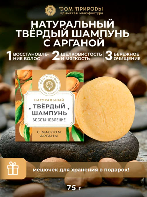 • Твёрдый шампунь с арганой "Восстановление", 75г