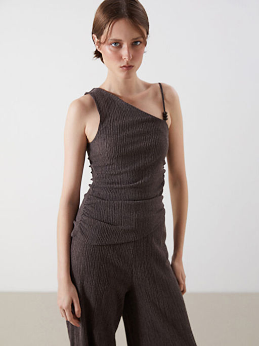Kay?k Yaka Dokulu B?zg?l? Bluz