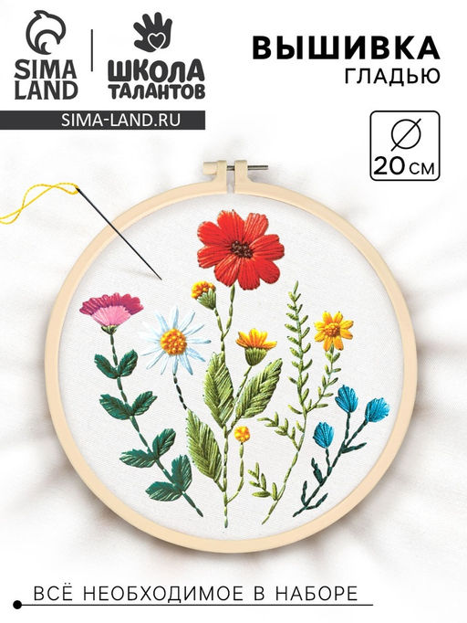 Вышивка гладью на пяльцах Полевые цветы, 20?20 см