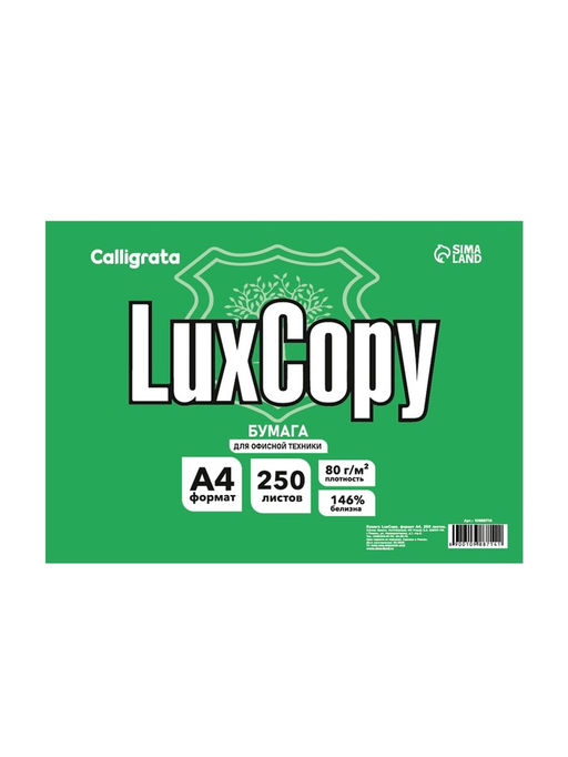 • Бумага «LuxCopy», А4, 250 листов, 80 г/м², белизна 146% CIE, класс С