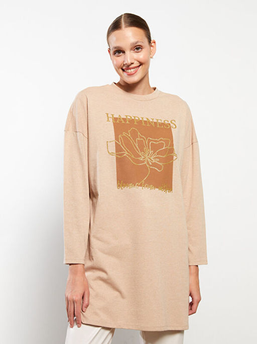 Bisiklet Yaka Bask?l? Uzun Kollu Kad?n Tunik