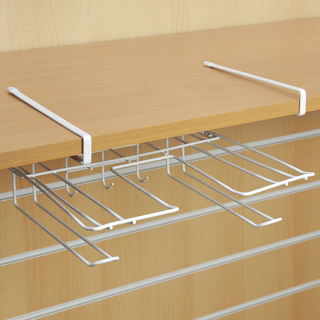 Полка металлическая, окрашенная, с креплением к полке "Лофт" 28,5х25,5х15см, с крючками - 3 штуки, с держателем для бумажного полотенца - 2 штуки, белый (Китай)
