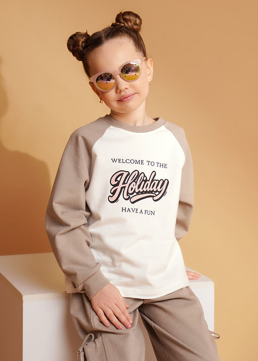 Укороченый свитшот из футера станет стильным дополнением к твоему гардеробу. Горловина оформлена эластичной окантовкой. Модель дополнена стильным принтом по центру. Сочетай свитшот с брюками из новой коллекции. 100%Хлопок