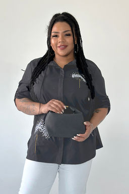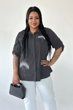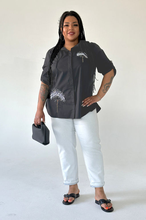 Оригинальная удлиненная рубашка свободного кроя идеальный вариант для женщин, ценящих простоту и элегантность. Модель имеет классический отложной воротник. Застегивается спереди на скрытые пуговицы под планку. Рукава длиной 3/4 можно красиво присобраны патами. Нарядности придает модная вышивка по переду. Вытачки на груди и удлиненная спинка способствуют оптимальной посадке по фигуре. Полуприлегающий силуэт не сковывает движений и искусно обыгрывает фигуру, маскируя мелкие недостатки. Рубашку можно комбинировать как с брюками, так и с легинсами.­