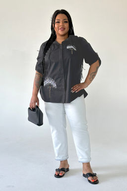 Рубашка "одуванчики" с удлиненной спинкой серая