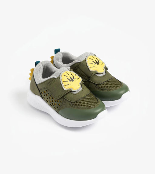 Кроссовки для мальчика с удобной застежкой на липучке. Модель оснащена светодиодами, которые активируются при ударных нагрузках. В ярком дизайне "Динозаврики".