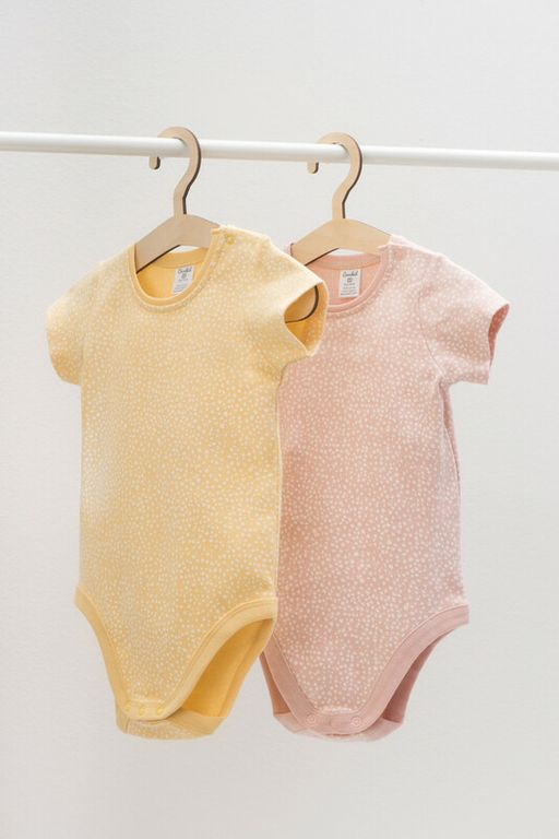Боди в упаковке 2 шт для новорожденных из мягкого, эластичного трикотажа произведенного из натурального хлопка. Изделие застегивается на кнопки. Оригинальная набивка выполнена из стойких, гипоаллергенных, текстильных красителей. Все трикотажные полотна производятся в соответсвии с нормами Швейцарского сертификата ЭкоТекс.­