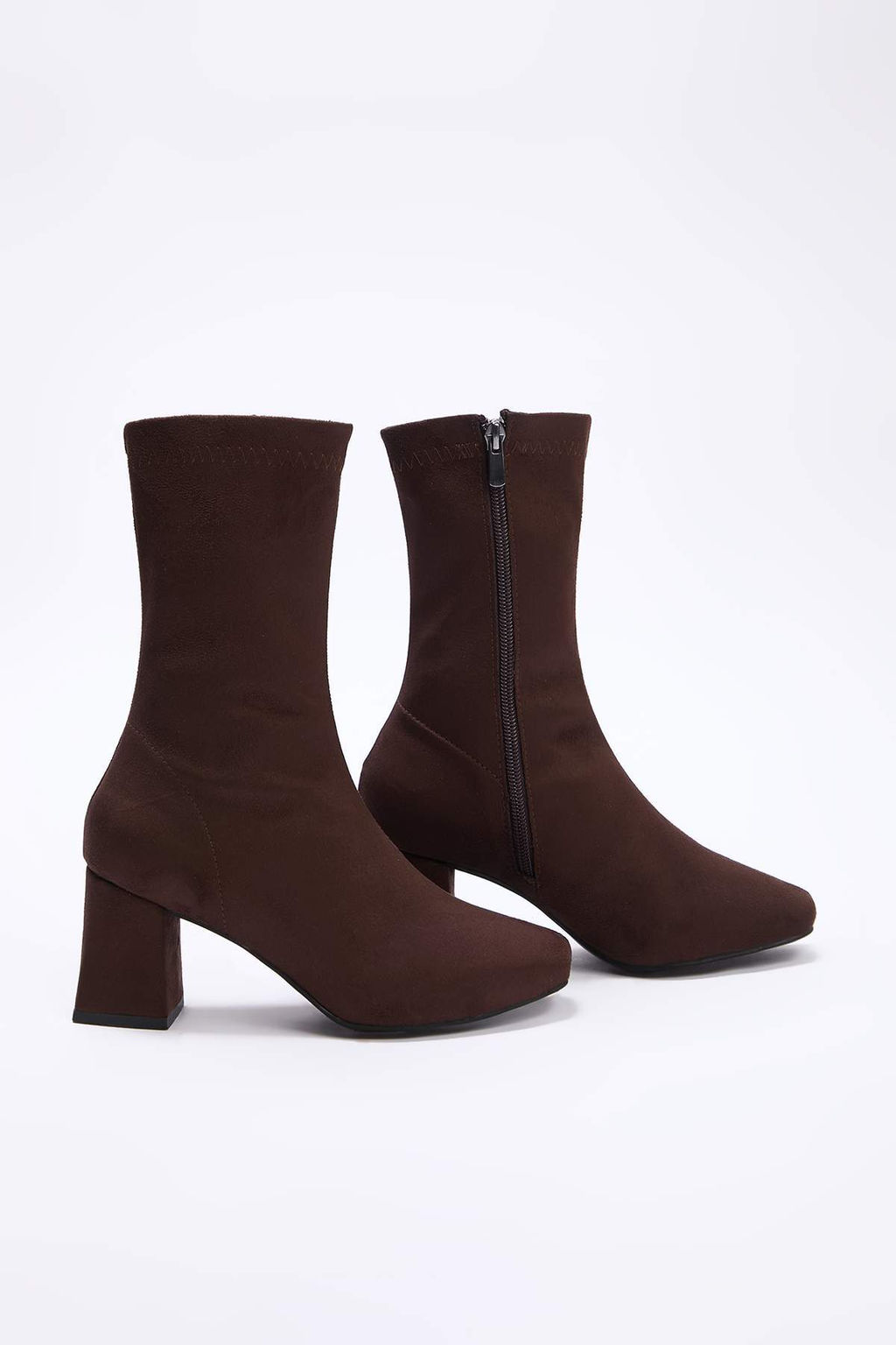 Kahverengi Strec Fermuarl? Kad?n 7 cm Blok Topuklu Bot TAKAW26BO00002