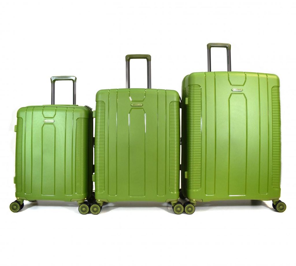 Универсальный комплект чемоданов MIRONPAN с возможностью увеличения объема. Модель в цвете авокадо выполнена из полипропилена современного материала, для которого характерны высокая ударопрочность, стойкость к перепадам температур, отличная износостойкость. Внутри находятся два отделения: одно - с ремнями-фиксаторами; другое - с тканевой перегородкой на молнии, карманом-сеткой на молнии и карманом на молнии для мелочей. Выдвижная ручка фиксируется в 3-х положениях. Сверху предусмотрена дополнительная ручка для удобства переноски. 4 двойных колеса вращаются на 360, позволяя чемодану двигаться легко и плавно. Характеристики модели: - объем 114,6 л, 75 л, 45,6 л; - возможность увеличения объема; - 2 отделения; - 4 двойных несъёмных/съёмные/ колеса со свободным вращением на 360; - телескопическая ручка; - встроенный кодовый замок ; - фиксаторы для одежды внутри чемодана. Высота*Ширина*Глубина L 76*52*29 см, вес - 4,3 кг, 29 дюйма M 68*46*24 см, вес - 3,6 кг, 25 дюйма S 57*40*20 см, вес - 2,9 кг, 21 дюйма -- Характеристики -- Цвет: Авокадо