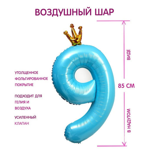 • Воздушный шар фольгированный 40" «Цифра 9 с короной»