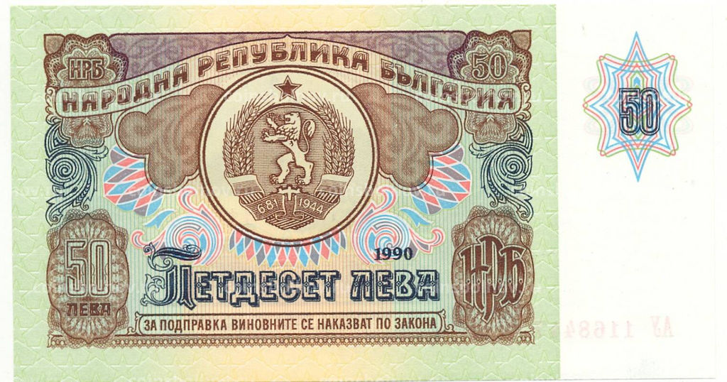 • Банкнота 50 левов 1990 года Болгария