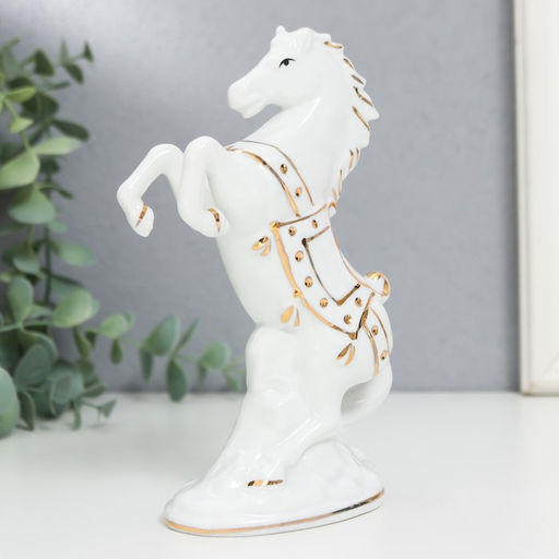 • Фигурка керамика «Белый конь на дыбах», с золотом, 15 см