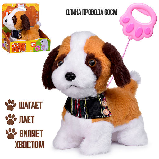 • При нажатии кнопки на поводке передвигает лапами и лает.