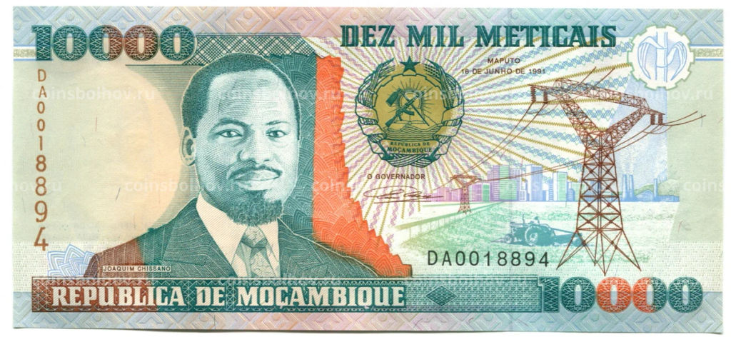 • Банкнота 10000 метикал 1991 года Мозамбик