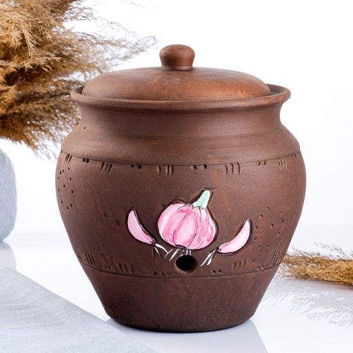 • Банка для хранения чеснока Кунгурская керамика «Роспись», 4 л, с отверстиями для вентиляции, молочение, коричневая