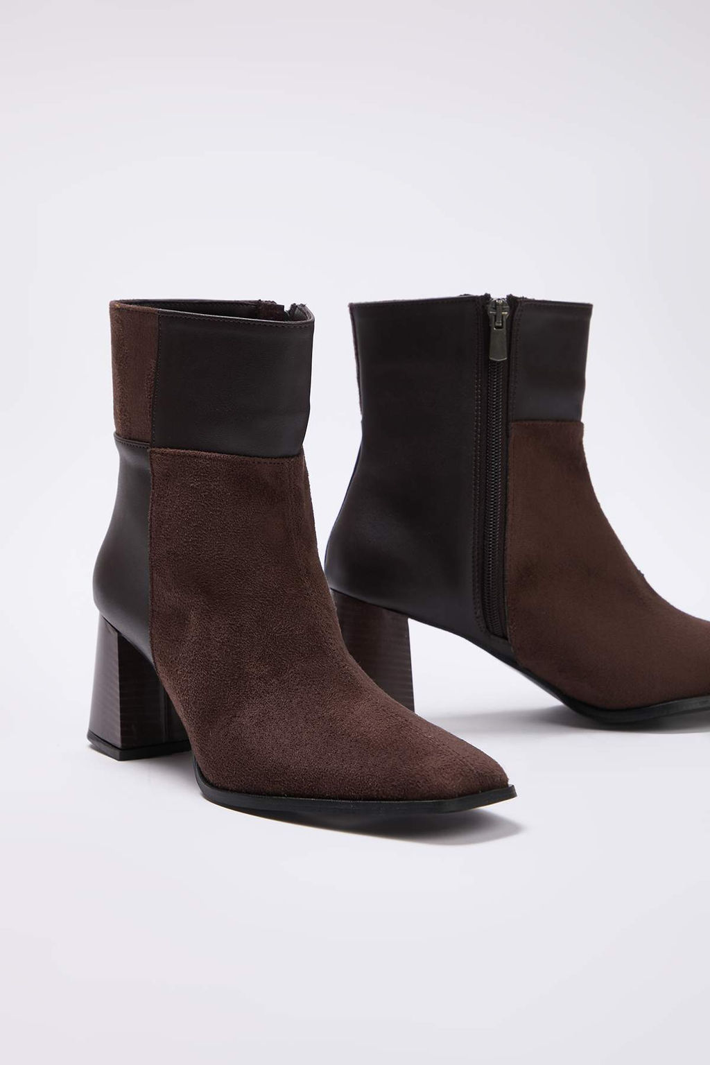 • Kahverengi Suet Renk Bloklu Detayl? Kare Burun Kad?n 7,5 cm Blok Topuklu Bot TAKAW26BO00099