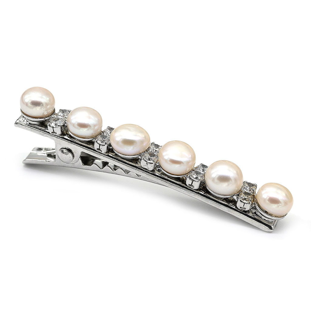 Заколка - зажим для волос цвета серебра с жемчугом и цирконами.