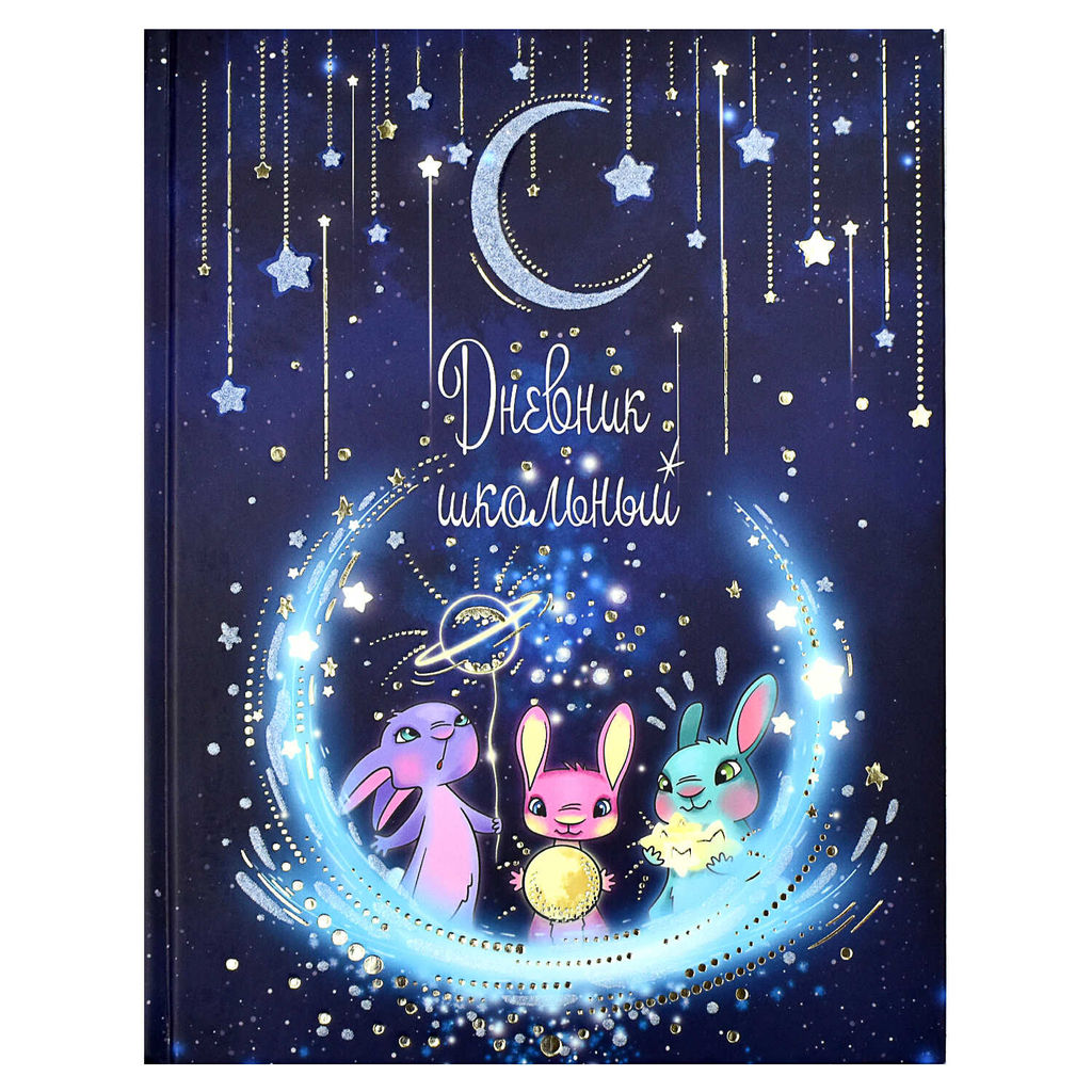 • Дневник школьный арт. 60256 ЗАЙЧИКИ / твёрдый переплёт 7БЦ, А5+, 48 л., выборочный перламутровый лак