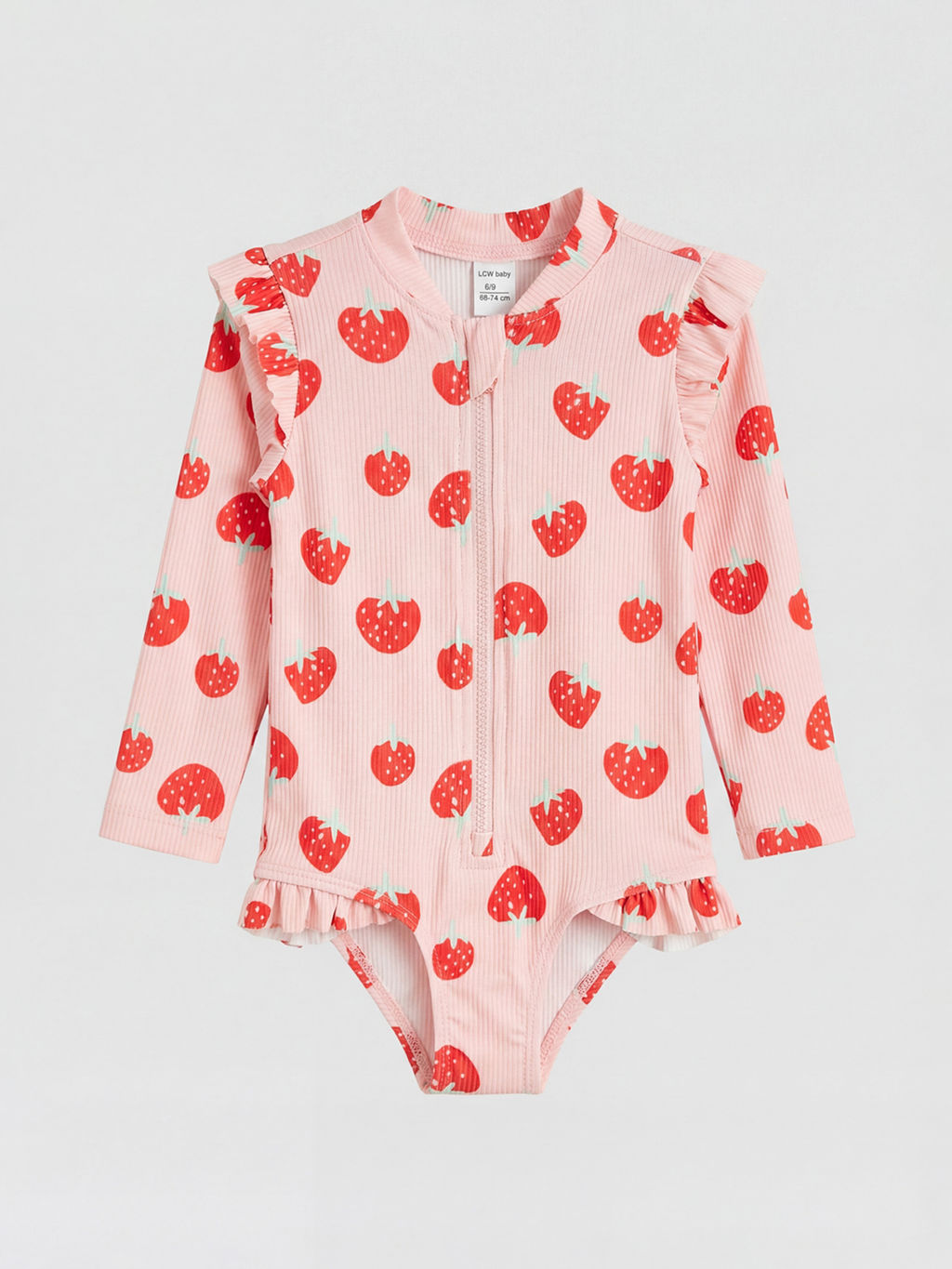Uzun Kollu Desenli K?z ?ocuk Mayo