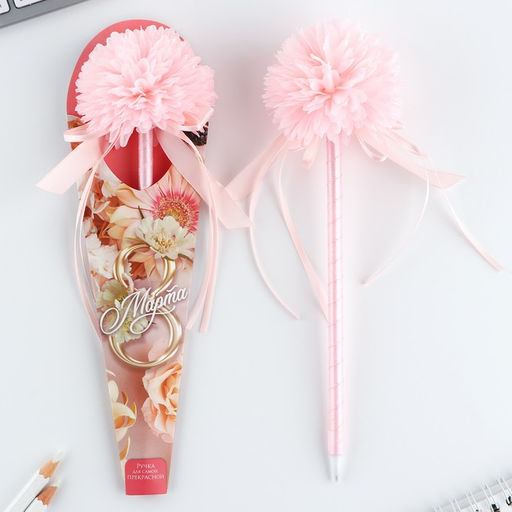 • Ручка прикол, шариковая, синяя паста, 1.0 мм 8 марта: Хризантема с лентами