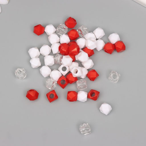 • Бусины пластик «Кристалл многогранник. Красный, белый, прозрачный», набор 30 г, 1×1×1 см