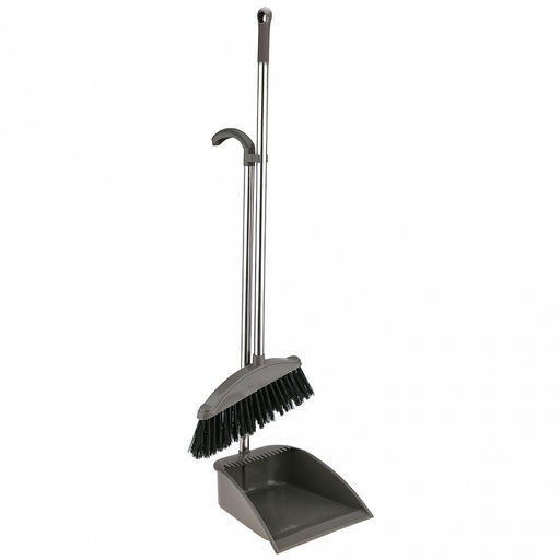 • Комплект пластмассовый: совок 23,5х23х8,5см, рукоятка 59см, съемная, металл окрашенный + сметка 3х25см, рукоятка 63см, съемная, металл окрашенный, ворс 7,5см, "Практик", серый (Китай)