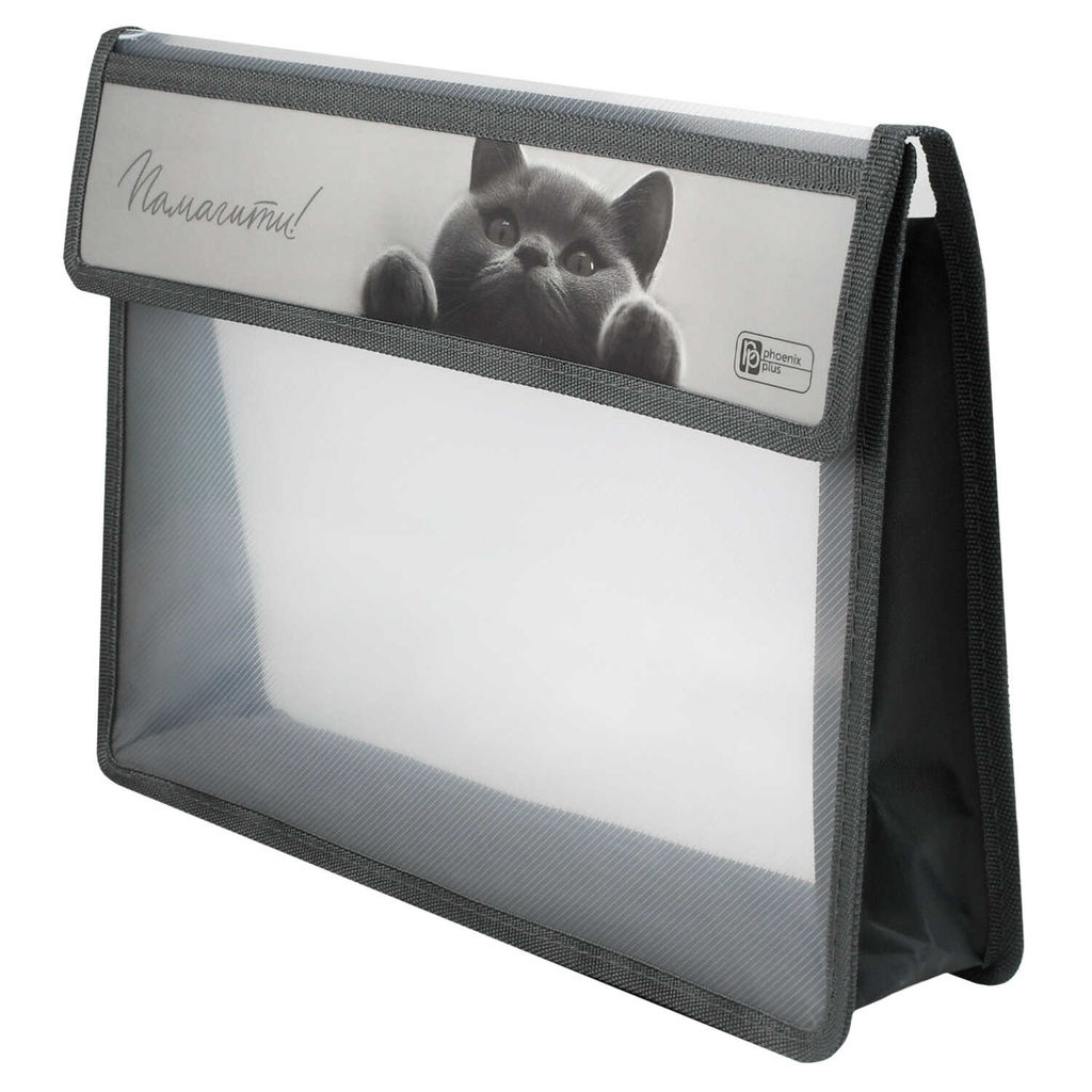 Папка для школьных тетрадей пластиковая Феникс+, арт. 73700/ 12 БРИТАНСКИЙ КОТ (полипропилен, формат А4, 34х25х6,8 см, 1 отделение (-я), липучка, дно с расширением, УФ-печать)