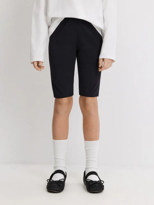 Шорты-велосипедки для девочки это практичный и универсальный элемент детского гардероба. Спортивные шорты для девочек выполнены из эластичного и дышащего хлопкового полотна, которое подходит для длительного ношения. По линии пояса расположена широкая эластичная резинка, благодаря которой изделие комфортно садится на разные типы фигуры. Удобная длина до колена и прилегающий силуэт дарят свободу и легкость движений. Черные велосипедки для девочки подойдут для занятий спортом в секциях, уроков физкультуры, активных игр и, конечно же, катания на велосипеде. Также универсальная модель позволит создавать стильные многослойные образы с объемным верхом. 20240420026