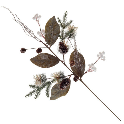 Эта новогодняя ветка настоящая находка для праздничного декора. Станет отличным самостоятельным украшением, а также прекрасно впишется в любую композицию.