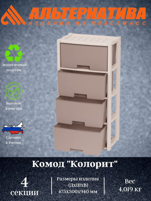 • Комод "Колорит" 4-х секцион. (бежевый) М7834