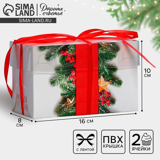 • Цена за 5 шт. Коробка для капкейка «С Новым годом», хвоя и ягоды, 16×8×10 см