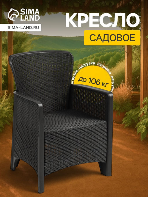 Кресло «Ротанг Лайт»Садовое кресло из прочного пластика с эффектом натурального ротанга. Выдерживает до 106 кг, подходит для террас, веранд и домашнего интерьера. Удобные подлокотники и эргономичная форма обеспечивают комфортный отдых.ПреимуществаУниверсальность применения - одинаково хорошо смотрится в саду, на веранде и в гостиной.Эргономичная конструкция - оптимальная высота и изгиб спинки для комфортного отдыха.Простота ухода - достаточно протереть влажной тканьюСтильный дизайн - цвет ""мокко"" гармонично сочетается с любой обстановкой.Устойчивость - прочная конструкция без скрипов.Легкий вес - удобно переносить и переставлять.Доступная цена - отличное соотношение качества и стоимости.Садовое кресло «Ротанг Лайт» - это надежное и стильное кресло для тех, кто ценит комфорт и практичность. Не требует особого ухода, сохраняет привлекательный вид длительный срок. Идеальный выбор для дачи, сада или уютного уголка в доме. Ширина, мм: 620. Глубина, мм: 585. Высота, мм: 850. Maксимальная нагрузка, кг: 106. Вид: Кресло садовое. Дополнительные элементы: С подлокотниками.