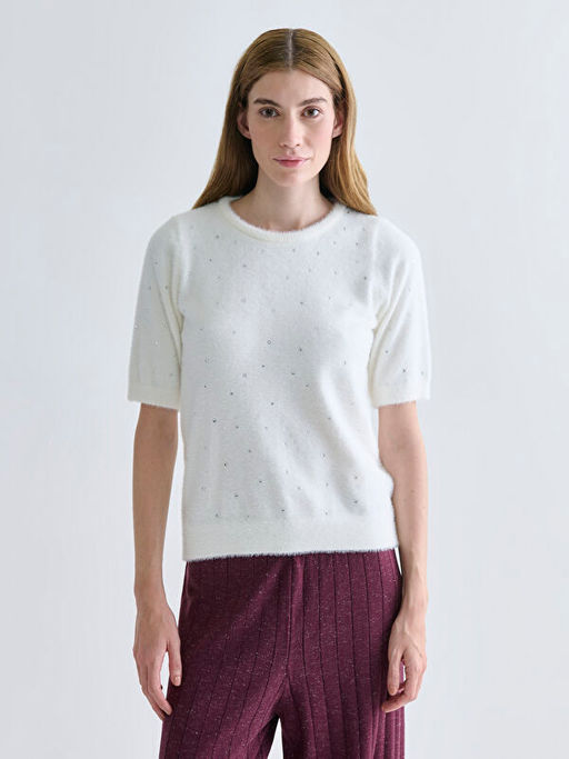 Bisiklet Yaka Ta?l? Kad?n Triko Kazak
