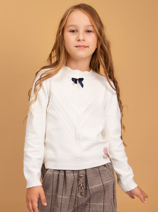 Теплый джемпер для девочки. Мягкий, вязаный трикотаж не сковывает движений, обладает хорошей воздухопроницаемостью и приятно облегает тело. Джемпер прекрасно сочетается как с юбками, так и с брюками. Великолепный выбор для стильного образа на каждый день.